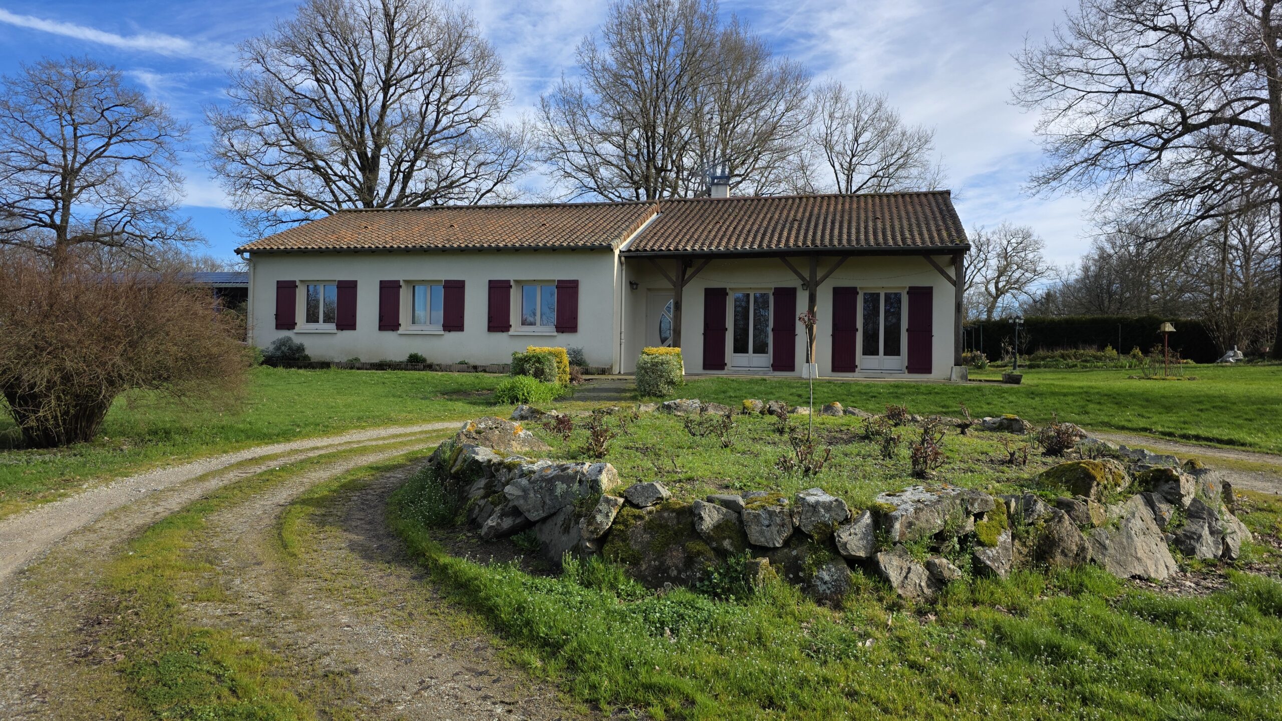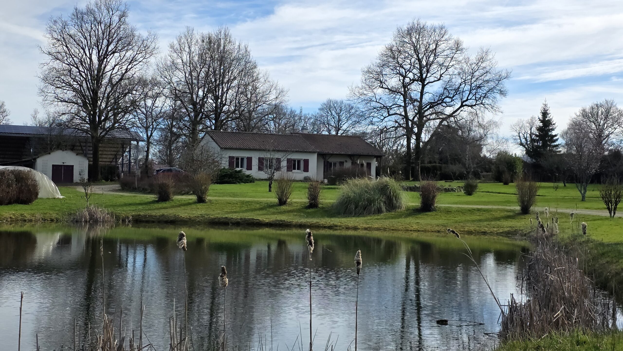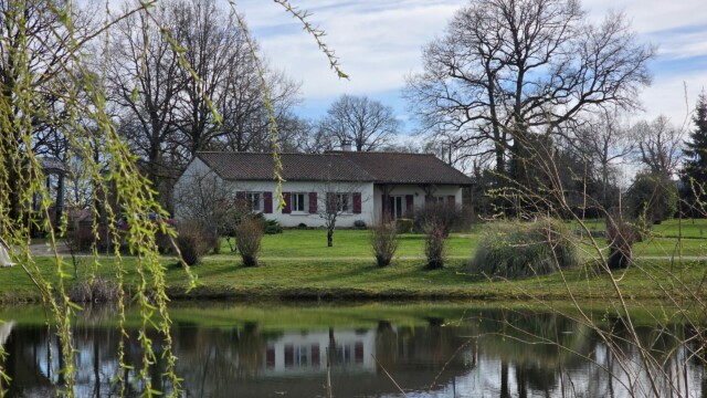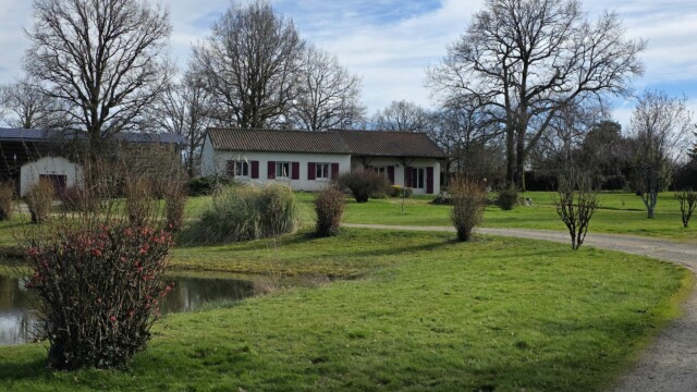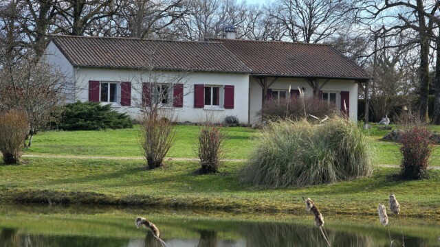 Sur cette propriété de 6HA 61a 07ca, vous trouverez un garage atelier de 33m², un appentis de 24m², un hangar de 142m², des dépendances, un poulailler et un plan d’eau.