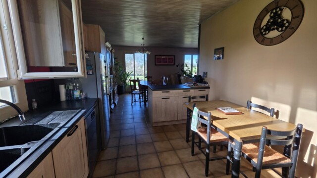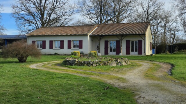 Dans un village du Haut-Limousin aux portes de la Charente Limousine, venez découvrir cette propriété comprenant un joli pavillon de plain-pied habitable de suite, murs en parpaings et charpente traditionnelle en bois avec isolation dans les combles et laine de verre dans les murs. La toiture est en tuiles mécaniques. Le système de chauffage est électrique et un insert dans le salon. Les huisseries sont en PVC double vitrage avec des volets en bois. La surface habitable est de 133m². Ce pavillon comprend : une entrée de 5,6m², une cuisine de 13,7m² ouverte sur un salon-salle à manger de 28,5m², un bureau de 3,7m², un cellier buanderie de 21,5m², un dégagement de 6,4m², une chambre de 11,7m², une chambre de 10,4m², une chambre de 11m², une chambre de 11m², une salle de bains avec baignoire, douche, vasque et placard de 7,2m², un WC de 2m², un garage de 16m².