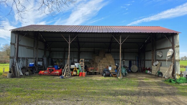Vous trouverez aussi un hangar agricole de 1200m² avec des panneaux photovoltaïques.