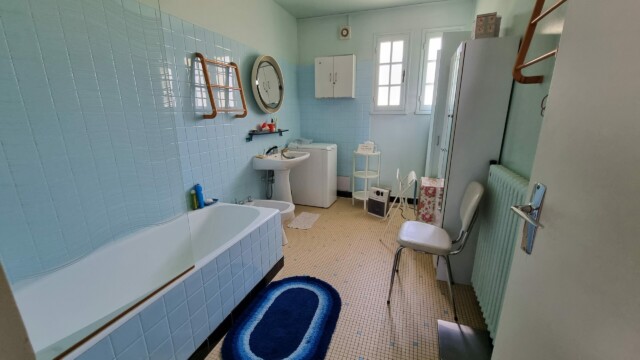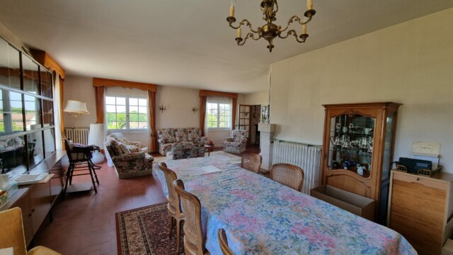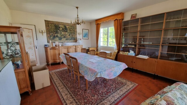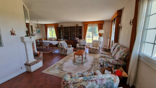 Cette habitation est composée d’un grand salon-salle à manger de 45,5 m² très lumineux avec une cheminée, une cuisine équipée de 11,8m² donnant accès sur le parc arrière . Un bureau de 11,25m², une chambre de 14m², deux chambres de 12,2m² chacune, une salle de bains de 8,4m², une salle d’eau de 2,4m², un WC et une entrée centrale. Au demi sous-sol, nous retrouvons une grande salle aménagée de 33m², un garage de 58m², une chaufferie de 15m² et une cave de 18,8m². Le chauffage est au fuel avec des radiateurs en fonte. Une partie des huisseries est en double vitrage. Dans le parc nous retrouvons une dépendance pour outils et matériel de jardinage. Cette maison est conçue pour permettre si nécessaire le télétravail dans le confort, en toute sérénité avec un très large espace qui facilite les relations familiales.