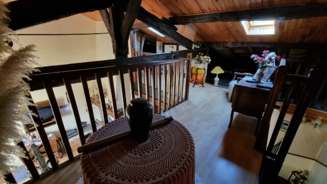 À l’étage : une mezzanine de 14,5m² et une petite pièce