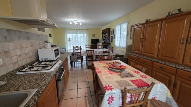 Dans un village du haut-Limousin, où vous trouverez tous les services essentiels au bon fonctionnement de la vie d’une commune, venez découvrir ce joli pavillon de plain-pied situé dans un secteur calme. Les murs sont en parpaings, charpente traditionnelle en bois avec isolation dans les combles. La toiture est en tuiles mécaniques. Le système de chauffage est électrique. Les huisseries sont en PVC double vitrage avec des volets roulants électriques. La maison est adaptée pour les personnes à mobilité réduite et est habitable de suite. L’assainissement est collectif. D’une surface habitable de 94m², cette maison comprend : une entrée avec placard de 4,9m², une cuisine de 11m² ouverte sur un salon-salle à manger de 26,5m², un cellier de 4m², un dégagement de 6m², une chambre de 10m², une chambre de 10m², une chambre de 11m², une salle d’eau de 8m², un WC avec lave-mains de 2,5m² et un garage de 23,5m².