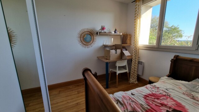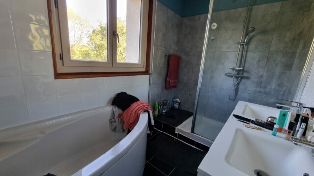 À l’étage : une mezzanine de 14,2m², une chambre de 14,2m² avec placard, une chambre de 11,5m² avec placard, une chambre de 8,4m² avec placard, une salle de bains de 5,25m² avec douche, baignoire d’angle et double vasque, un dressing de 6,4m², un WC et un couloir de 7,8m²