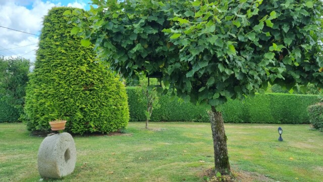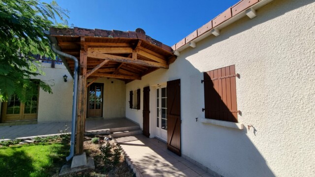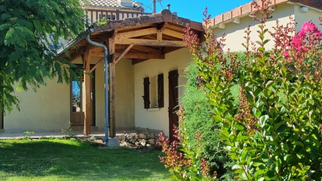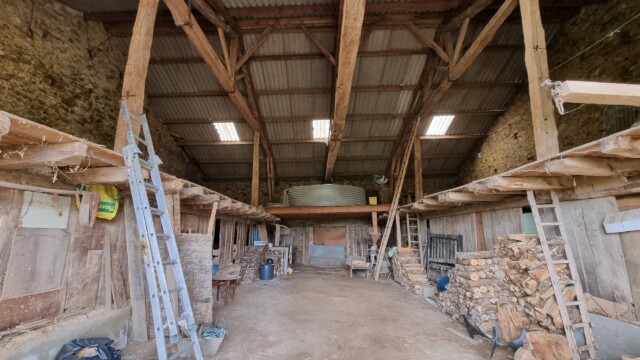 La grange est de construction traditionnelle (murs en pierres et charpente en chêne) de 215m².