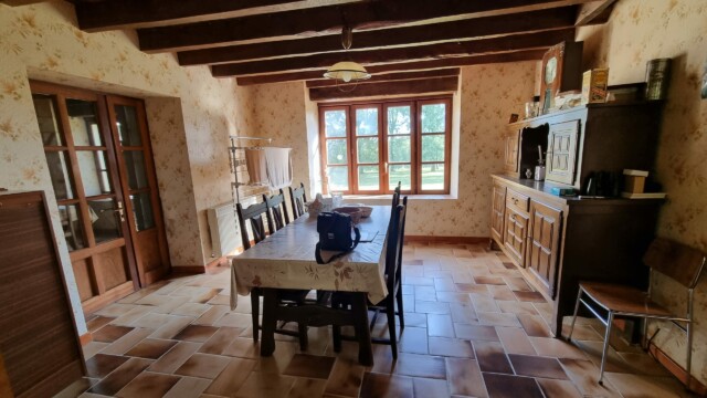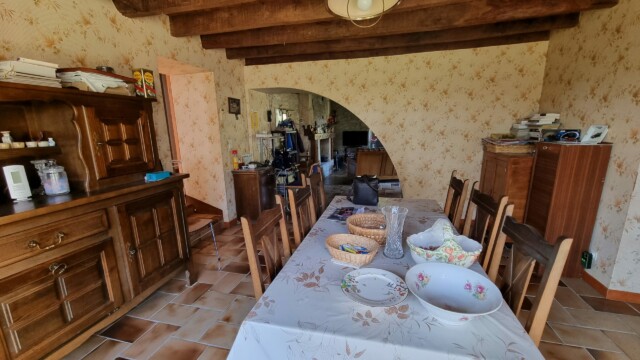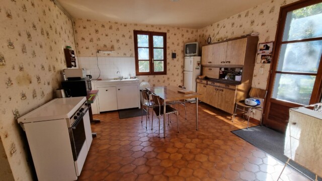 Au RDC d’un joli salon en pierres apparentes avec une belle cheminée bois/pierres, une salle à manger jouxtant une grande cuisine donnant sur une terrasse extérieure, une salle d’eau et un WC, une autre pièce de 16m² à aménager servant de petit garage.